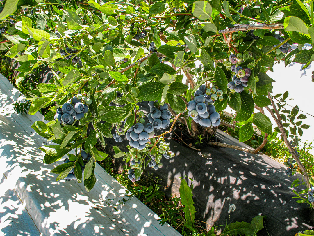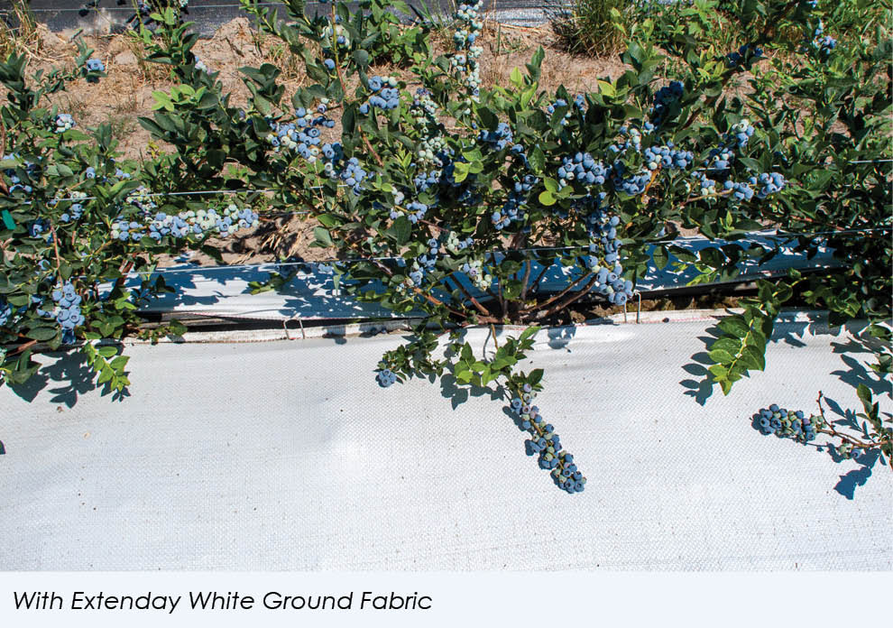 Blueberries grown with Extenday Reflective Fabric are larger and sweeter compared to those grown without it.